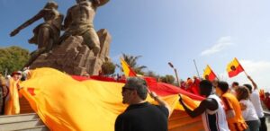Des supporters de Galatasaray vivant au Sénégal se sont rassemblés devant le Monument de la Renaissance, le 3 juin, et ont déployé un drapeau de 30 mètres de leur club favori sur les marches du monument. Ils célébraient le titre de champion du club d’Istanbul.