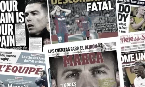La planète football affiche son soutien à Cristiano Ronaldo après son drame familial, la presse catalane déçu après la nouvelle déroute du Barça, le derby milanais enflamme l’Italie, retrouvez dans votre revue de presse Foot Mercato les dernières informations de la presse sportive européenne.