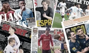 Le Real Madrid a «lancé» le sprint final de fin de saison comme le titre AS avec un Modric élancé sur la première page. Le journal nous rappelle que depuis la défaite lors du Clasico, le Real n’a perdu aucun match. Ils ont 12 points d’avance sur le FC Barcelone et Séville. Le média espagnol s’est aussi interrogé sur «le clin d’oeil» de Vinicius Junior sur Instagram à Mbappé. «Crack crack» a été le commentaire du Brésilien sur la photo du prodige français. Un appel à signer au Real pour les journalistes de AS. Les deux joueurs sont amis depuis leur rencontre en 2019 à la cérémonie du Ballon d’or. De plus, pour le quotidien, les récentes déclarations de Kylian Mbappé après la victoire contre Clermont ce week-end le rapprochent du maillot blanc. Pour rappel, l’attaquant parisien a reconnu avoir des regrets sur le fait que son trio avec Neymar et Messi ne fonctionne que maintenant.