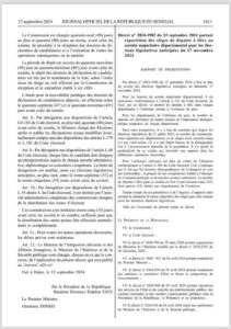 Signé le 13 septembre 2024, un décret du Président Bassirou Diomaye Faye est paru au journal officiel et partagé ce jour, portant convocation du Collège électoral, en vue des élections législatives du 17 novembre 2024.