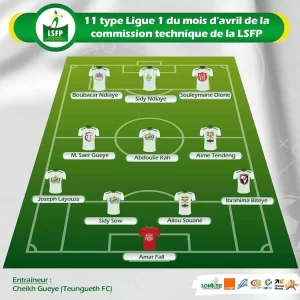 La Ligue sénégalaise de Football Professionnel (LSFP) a dévoilé ce lundi 6 mai son 11 type de mois d’avril en Ligue 1 ainsi qu’en Ligue 2. Dans le XI type de l’élite du football sénégalais, on note la présence de trois protégés de Cheikh Guèye, de deux poulains de Malick Daf et aussi de deux garçons de Sidarte Sarr.
