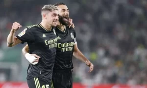 Hier soir, alors que tout le monde surveillait de près Karim Benzema, tout juste sacré Ballon d’Or, Valverde a tiré son épingle du jeu. En effet, il a ouvert le score lors de la victoire 3-0 face à Elche en envoyant un missile au fond des filets à la 11e minute de jeu. Une nouvelle réalisation pour le natif de Montevideo, plus indispensable que jamais à son équipe selon les observateurs. Un «coup de canon en or», titre d’ailleurs ce jeudi AS qui a commenté ensuite :« un autre coup de fouet de Valverde a ouvert la voie du triomphe face à Elche».
