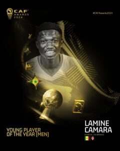 La Confédération africaine de football (CAF) a organisé ce lundi la cérémonie de trophées individuels, au Palais des Congrès de Movenpick à Marrakech. Sans réelle surprise, c’est Lamine Camara, qui a gagné le trophée du meilleur jeune joueur africain pour la deuxième fois consécutive. L’international sénégalais a ainsi devancé Karim Konate (Côte d’Ivoire / Salzburg) et Oumar Diakite (Côte d’Ivoire / Reims).